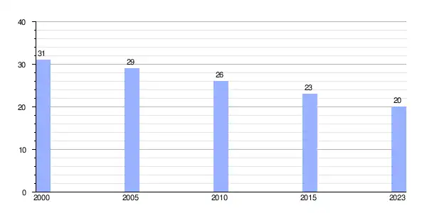 | Gráfica de evolución demográfica de O Aciveiro entre 2000 y 2023 |