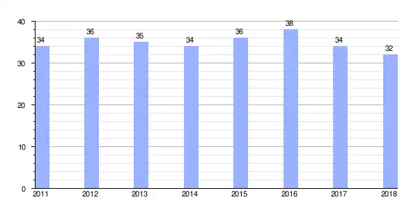 | Gráfica de evolución demográfica de O Mato entre 2011 y 2018 |