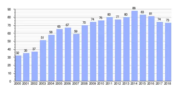 Gráfica de evolución demográfica de Portiño entre 2000 y 2018