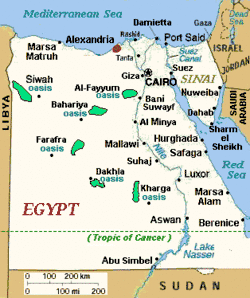 Célebres son los oasis de Egipto, que fueron administrados con la misma atención que las demás regiones durante la época del antiguo Egipto. Servían de lugar de aprovisionamiento y descanso a las grandes caravanas de beduinos comerciantes del interior de África, haciéndose mención en los anales egipcios de estos bajo la denominación más general de habitantes del territorio líbico.