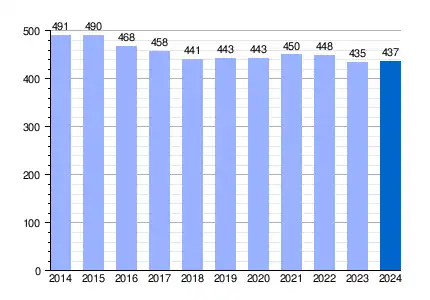 | Gráfica de evolución demográfica de Obéilar entre 2014 y 2024 |