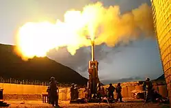 Disparo nocturno del Obús M777 del Ejército de los Estados Unidos -