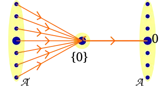 El objeto cero, por definición, debe ser un objeto terminal, lo que significa que un morfismo A → {0} debe existir y ser único para un objeto arbitrario A. Este morfismo asigna cualquier elemento de A a 0.