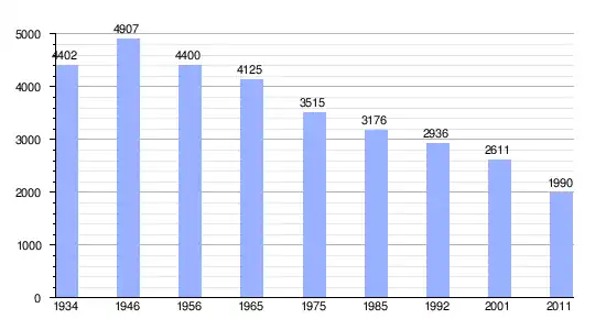 | Gráfica de evolución demográfica de Obnova entre 1934 y 2011 |