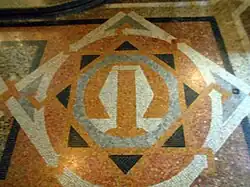 Gaudí realizó diversas intervenciones en la iglesia y el colegio: en la primera diseñó el altar, la custodia, el mosaico del pavimento y la iluminación; en el colegio fue artífice del mobiliario. La mayoría de estas obras se perdieron en un incendio provocado en el transcurso de la Semana Trágica en 1909, del que solo subsistió el mosaico; también se conservan las abrazaderas de los aparatos de iluminación, que habían sido anteriormente trasladadas por las monjas a otro colegio. Del altar se sabe que era de estilo gótico y la custodia de estilo bizantino, pero no se tienen más detalles. El mosaico es una obra de opus tessellatum, realizada probablemente por el mosaiquista italiano Luigi Pellerin, autor del mosaico del vestíbulo de la iglesia de las Salesas, obra de Joan Martorell —otro de los maestros de Gaudí— en la que intervino Gaudí como ayudante. El mosaico está formado por pequeñas piezas de mármol, unidas por mortero de cal. En la nave y el presbiterio tiene motivos geométricos, mientras que en el crucero figuran diversas letras: J y M, por Jesús y María; y Α y Ω (alfa y omega), la primera y última letras del alfabeto griego, que en el ámbito cristiano se corresponden a la simbología del principio y el fin, identificados con Jesucristo o Dios. Este pavimento fue restaurado en 1986 por Lluís Bru, cuya intervención fue inaugurada en 1989 por el cardenal Narcís Jubany.[7]