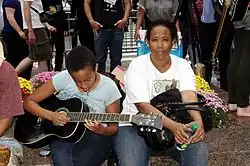 - ↑ Vitchers, Tracey (26 de septiembre de 2011). «Occupying--Not Rioting--Wall Street». Huffington post. Consultado el 1 de octubre de 2011.