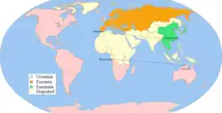 ![]() Probable división política del mundo según los datos de la novela 1984 de George Orwell | ||