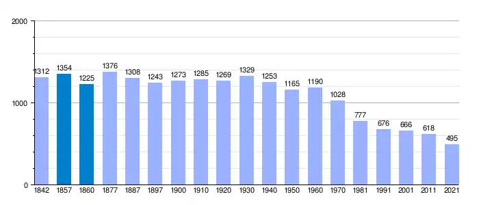 | Gráfica de evolución demográfica de Ochagavía[3] entre 1842 y 2021 |
