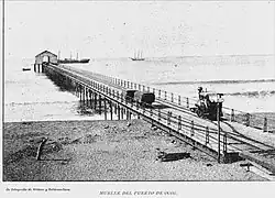 Muelle del puerto de Ocós en 1892. Fotografía de Alberto G. Valdeavellano.