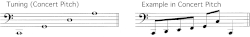 Mi1–La1–Re2–Sol2, afinado igual que un contrabajo, o Do1–Sol1–Re2–La2, afinado una octava por debajo de un violonchelo. | Más grande que un contrabajo convencional; se toca como un contrabajo |