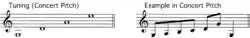 Nota: Si bien los violines bajo pequeño y contrabajo fueron diseñados y originalmente pensados para ser afinados en quintas, la mayoría de los bajistas consideran poco práctico el cambio adicional requerido. La New Violin Family Association enumera las afinaciones de estos instrumentos en cuartas, mientras que el Hutchins Quartet conserva la afinación original en quintas.