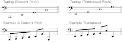 - ↑ La existencia de dos bajos, uno más pequeño y otro más grande, también era una característica de la familia de las violas da gamba, que tenía dos tipos de violones afinados con una cuarta de separación