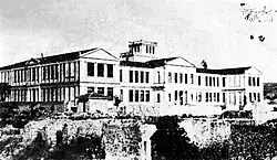 Otro importante proyecto emprendido durante la administración griega fue la institución y organización de la Universidad Jónica de Esmirna. Originalmente fue concebida por el primer ministro griego Eleftherios Venizelos y encomendada al profesor matemático germano-griego Constantin Carathéodory de la Universidad de Gotinga, como director de la nueva universidad.[8][23] En el verano de 1922, se completaron sus instalaciones con un coste de 110.000 liras turcas. Estas incluían 70 aulas, un gran anfiteatro, varios laboratorios y estructuras menores separadas para el personal de la universidad.[24] Sus diversas escuelas y departamentos de la universidad debían comenzar a funcionar gradualmente.[25] Además, un laboratorio de microbiología, el instituto local Pasteur y el departamento de salud se convirtieron en los primeros campos de enseñanza de la nueva universidad.[8]
