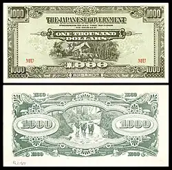 Antes de la invasión, el gobierno japonés había impreso billetes de yenes militares sin numerar para su uso en todos los territorios ocupados del Sudeste Asiático.[57][58] El aumento de la inflación, junto con la interrupción de la economía de Japón por parte de los Aliados, obligó a la administración japonesa a emitir billetes de mayor valor y aumentar la cantidad de dinero en circulación. A partir de enero de 1942, los japoneses fijaron los yenes militares a la par del yen nacional.[59]