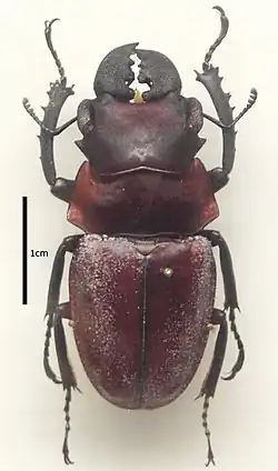 Odontolabis latipennis es una especie de coleóptero de la familia Lucanidae.