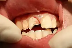 - ↑ a b Da Fonseca, M. A. (mayo-junio de 2010). «Dental and oral care for chronically ill children and adolescents». Gen Dent (Revisión) 58 (3): 204-9; quiz 210-1. PMID 20478800.