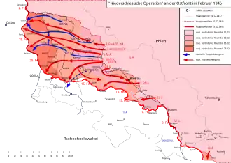 La Ofensiva de Baja Silesia (en ruso: Нижнесилезская наступательная операция) fue una operación militar ofensiva emprendida por el Ejército Rojo en dicho territorio alemán hacia el final de la Segunda Guerra Mundial.[1]Fue llevada a cabo del 8 al 24 de febrero de 1945 por las fuerzas del 1.er Frente Ucraniano. Inicialmente, el plan de operación preveía la ofensiva del grupo de ataque del frente en dirección a Berlín. Sin embargo, la fuerte resistencia de las tropas alemanas hizo posible llevar a cabo este plan sólo parcialmente.