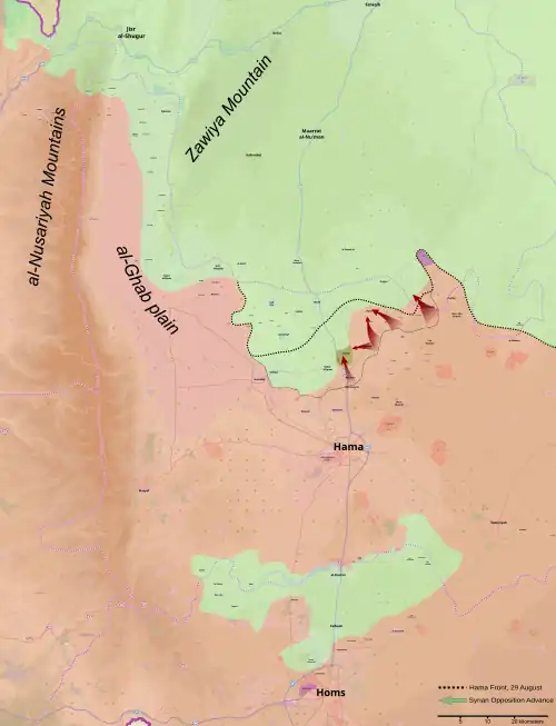- ↑ a b «Syrian rebels make gains in northern Hama province, capture strategic town». Reuters. 30 de agosto de 2016.