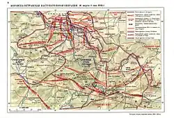 La inteligencia alemana pudo revelar la preparación de las tropas soviéticas para la ofensiva, así como establecer la hora exacta de su inicio. Para evitar pérdidas por fuego de artillería, el mando alemán retiró sus tropas de la línea del frente a la segunda línea de defensa en la noche del 10 de marzo.