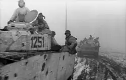 - ↑ El «cuerpo de ejército» estaba formado por varias divisiones (normalmente entre dos y cuatro). Un cuerpo blindado soviético constaba de tres brigadas de sesenta y cinco tanques cada una, y su tamaño era similar a una división panzer con sus efectivos completos.[4]