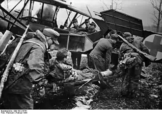 ![]() Un avión ligero Fieseler Fi 156 Storch evacua a varios heridos alemanes del frente a mediados de febrero de 1944 | ||||