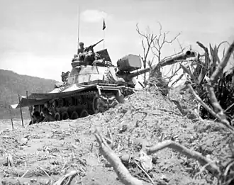 ![]() Tanque posicionado para proveer seguridad en un camino. | ||||