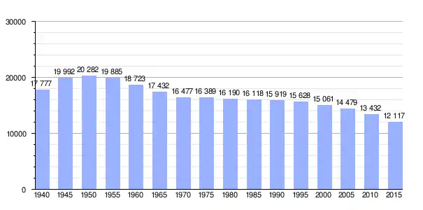 | Gráfica de evolución demográfica de Ogano entre 1940 y 2015 |