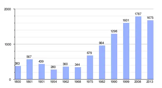 | Gráfica de evolución demográfica de Ogy-Montoy-Flanville entre 1800 y 2013 |