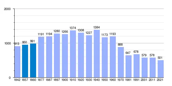 | Gráfica de evolución demográfica de Ojós[4] entre 1842 y 2021 |