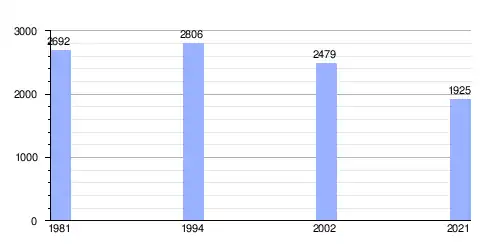 Hasta 2021 la población era de 1925 habitantes,[2] con una densidad de población de 142,8 habitantes por kilómetro cuadrado.[2]