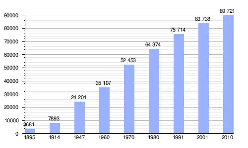 | Gráfica de evolución demográfica de Olavarría entre 1991 y 2010 |