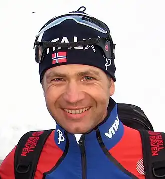 Ole Einar Bjørndalen (Drammen, 27 de enero de 1974) es un deportista noruego que compitió en biatlón.[1] Conocido como el «rey del biatlón», es uno de los biatletas más grandes de la historia,[2] por sus ocho títulos de campeón olímpico, veinte medallas de oro en los Mundiales y 108 victorias en la Copa del Mundo.[3]