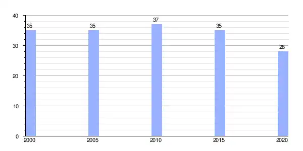 | Gráfica de evolución demográfica de Oleiros (aldea) entre 2000 y 2020 |