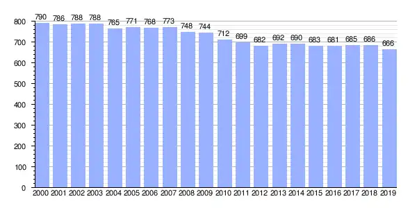 | Gráfica de evolución demográfica de Oleiros (parroquia) entre 2000 y 2019 |