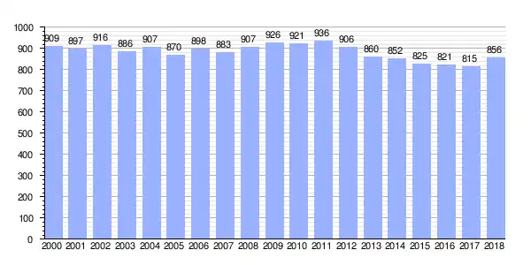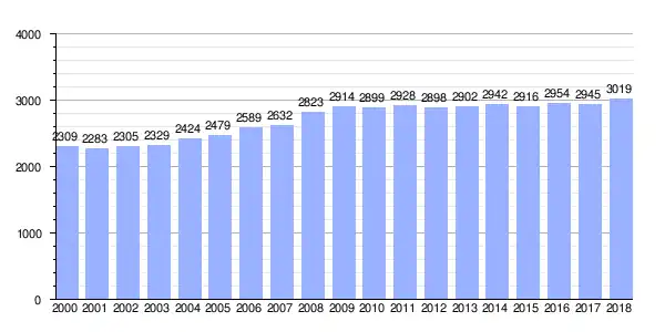 | Gráfica de evolución demográfica de Oleiros (parroquia) entre 2000 y 2018 |