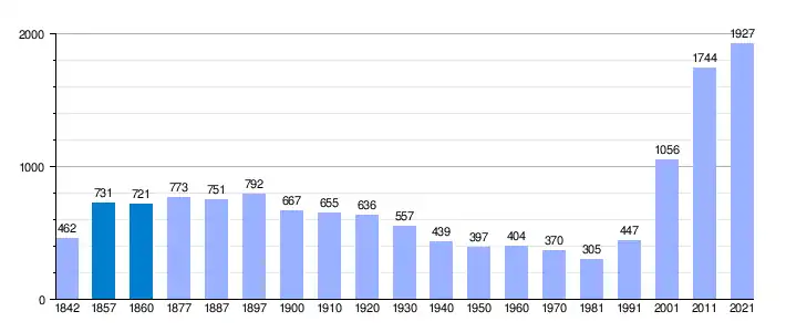 | Gráfica de evolución demográfica de Olesa de Bonesvalls[3] entre 1842 y 2021 |