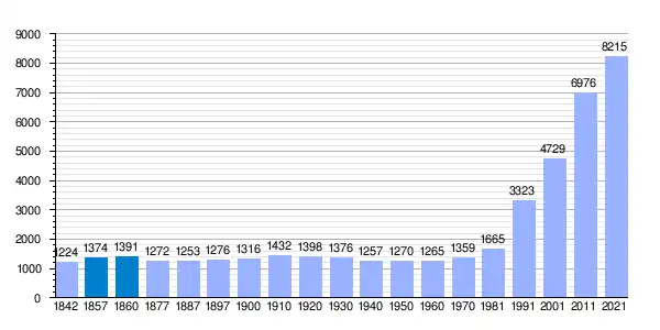 El mantenimiento en poco más de los 1000 habitantes desde 1900, sufre un crecimiento significativo a partir de los años 80. En la siguiente tabla, donde se muestra la evolución del número de habitantes entre 1996 y 2006 según datos del INE, se aprecia el constante aumento de los últimos años.