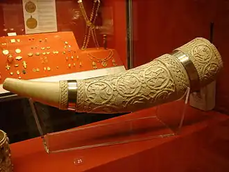 Los olifantes son instrumentos de viento tallados en un colmillo de elefante que utilizaban los caballeros durante la Edad Media haciéndolos sonar como señal de aviso. A menudo se denomina erróneamente "cuerno" a este instrumento.[1]