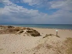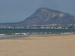 La costa, que se extiende a lo largo de 8,8 km,[4]​ es baja y arenosa, con playas de arenas finas en toda su longitud, excepto en el extremo más meridional, en donde comienza la provincia de Alicante. Parte de su término municipal está integrado en el parque natural del Marjal de Pego-Oliva.