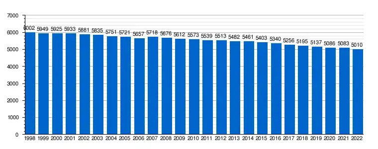| 5 925 | 5 933 | 5 881 | 5 835 | 5 751 | 5 721 | 5 657 | 5 718 | 5 676 | 5 612 | 5 573 | 5 539 | 5 513 | 5 482 | 5 461 | 5 403 | 5 340 | 5 256 | 5 195 | |