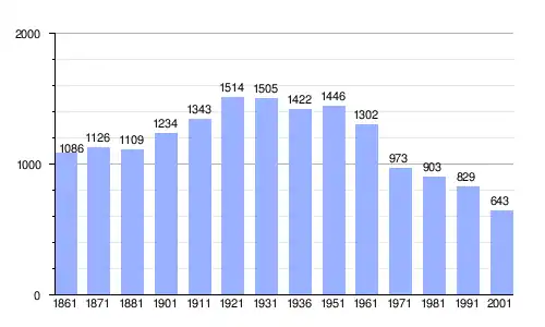 | Gráfica de evolución demográfica de Olivadi entre 1861 y 2001 |