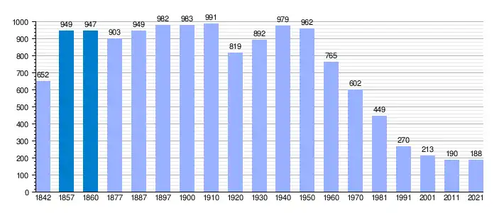 | Gráfica de evolución demográfica de Olmedillo de Roa[3] entre 1842 y 2021 |