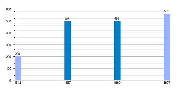 | Gráfica de evolución demográfica de Olmillos de Valverde[6] entre 1842 y 1877 |