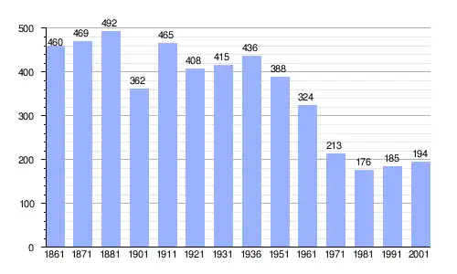 | Gráfica de evolución demográfica de Oltressenda Alta entre 1861 y 2001 |