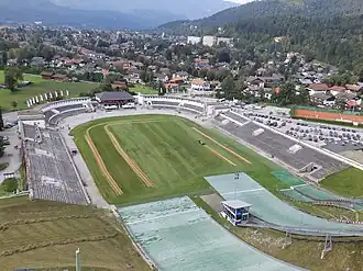 En 1939, el estadio fue remodelado para los Juegos Olímpicos de Invierno de 1940, que fueron cancelados debido al estallido de la Segunda Guerra Mundial. Hoy en día, el estadio es una de las atracciones turísticas más populares de Garmisch-Partenkirchen.[3]