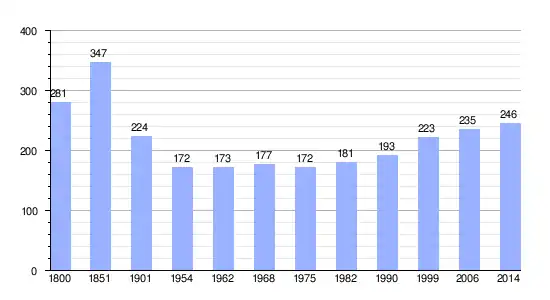 Los datos demográficos contemplados en este gráfico de la comuna de Omiécourt[4] se han cogido de 1800 a 1999 de la página francesa EHESS/Cassini, y los demás datos de la página del INSEE.[5]