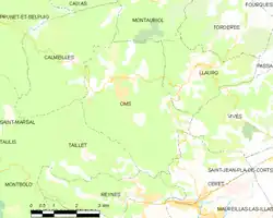 - Localización de Oms en un mapa de Francia y comunas limítrofes (enlace roto disponible en Internet Archive; véase el historial, la primera versión y la última).