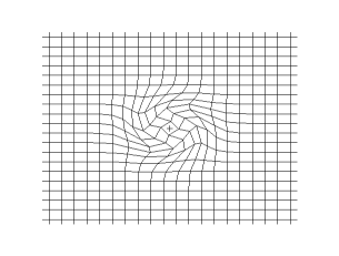 El movimiento de esta onda puede expresarse matemáticamente de la siguiente manera. Sea d la dirección de propagación (un vector con unidad de longitud) o cualquier punto de referencia del medio. Sea u la dirección de las oscilaciones (otro vector de unidad de longitud perpendicular a d). El desplazamiento de una partícula en cualquier punto p del medio y en cualquier momento t (según) será: