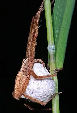 La ooteca arácnida es el depósito de huevos de las arañas. Son aproximadamente esféricos de más o menos de 1 mm de diámetro; son puestos en una masa compacta y recubiertos de una seda en menor o mayor grado, formando un capullo. Pueden ser de diversos colores: amarillo pálido, pardos, rosados e incluso verde brillante como ocurre con la Micromata.
