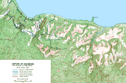 El terreno al oeste del Kokumbona favoreció los esfuerzos japoneses de retrasar a los estadounidenses, mientras que el resto del 17.° Ejército continuó la retirada de sus tropas hacia cabo Esperanza. Durante su avance, los estadounidenses se vieron cercados en un corredor que tenía tan sólo entre 270 y 500 metros de ancho, entre el océano y la tupida vegetación y las empinadas crestas de coral. Estas, que corrían perpendiculares a la costa, además se encontraban paralelas a numerosos riachuelos y calas que cruzaban el corredor regularmente.[29]